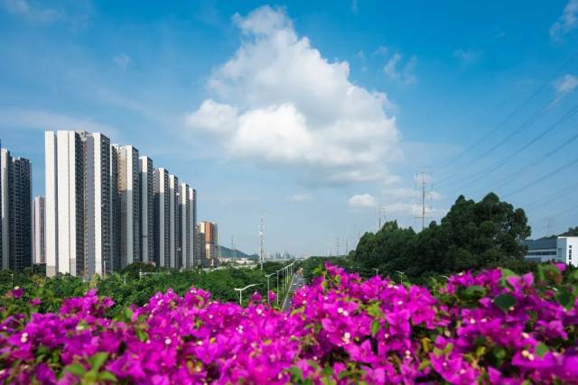近日,东鹏大道跨线桥附近的簕杜鹃迎来了今年的第一轮盛花期。朵朵繁花簇拥绽放,宛如燃烧的云霞,在艳阳下肆意舒展着蓬勃的生命力,为车水马龙的都市动脉披上了一层流动而生机勃勃的绚丽外衣。详情>>>